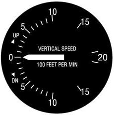 The vertical speed indicator (VSI) or vertical velocity indicator indicates whether the aircraft is climbing, descending, or in level flight. The rate of climb or descent is indicated in feet per minute. If properly calibrated, this indicator will register zero in level flight. [Figure 3-3]