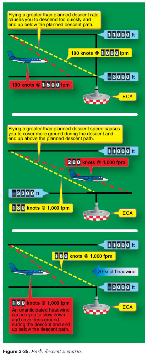 If air traffic control is able to accommodate your request, the ideal point to begin the descent is at the planned top-ofdescent point. If air traffic control is unable to accommodate such a request, one of two scenarios will ensue: an early descent or a late descent.
