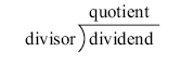Division is the process of finding how many times one number (called the divisor) is contained in another number (called the dividend). The result is the quotient, and any amount left over is called the remainder.