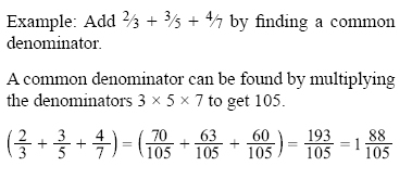 A common denominator can also be found for any group of fractions by multiplying all of the denominators together. This number will not always be the LCD, but it can still be used to add or subtract fractions.