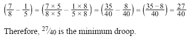 Example: The tolerance for rigging the aileron droop of an airplane is 7/8 inch ± 1/5 inch. What is the minimum droop to which the aileron can be rigged? To subtract these fractions, first change both to common denominators. The common denominator in this example is 40. Change both fractions to 1/40, as shown, then subtract.