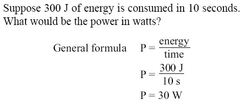 The unit measurement for power is the watt (W), which refers to a rate of energy conversion of 1 joule/second. Therefore, the number of joules consumed in 1 second is equal to the number of watts. A simple example is given below.