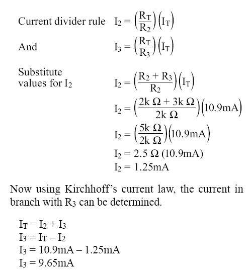 The current through the parallel branches of R2 and R3 can be determined using the current divider rule discussed earlier in the text. Recall that: