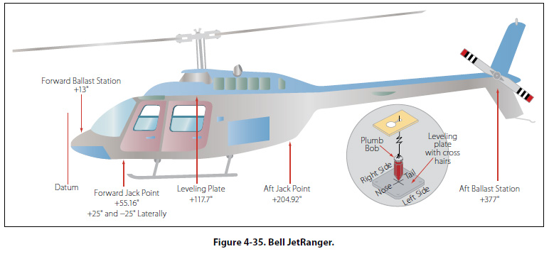 As an example of weighing a helicopter, consider the Bell JetRanger in Figure 4-35, and the following specifications and weighing data.