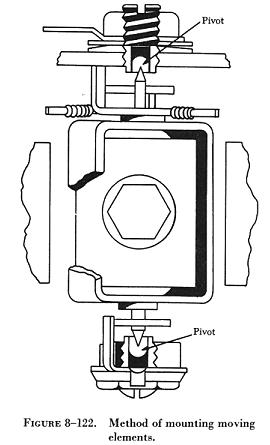 The major units are mounted in their relationship to one another (figure 8-123). Note that the coil portion of the moving element is in the magnetic field of the permanent magnet.