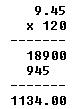 Using the formula, Watts = Amperes x Voltage, what is the wattage of an electric heater that uses 9.45 amperes from a 120 volt source?