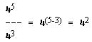 If two numbers are written with the same base, their quotient is equal to the base raised to a power equal to the algebraic difference of their exponents (numerator's exponent minus denominator's exponent).