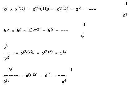 Note particularly that the rules specify algebraic addition and algebraic subtraction of the powers. Here are some summarizing examples: