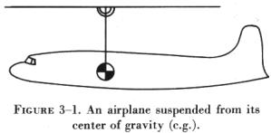 Obtaining this balance is simply a matter of placing loads so that the average arm of the loaded aircraft falls within the CG range. The exact location of the range is specified for each type of airplane. {See unreferenced figure 3-1. An airplane suspended from its center of gravity (CG). |