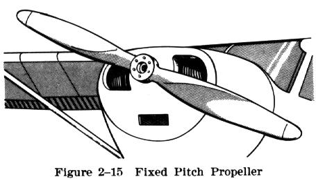 Fixed pitch propellers are designed for best efficiency at one rotational and forward speed. They are designed to fit a specific set of conditions involving both the engine rotational speed and the airplane's forward speed. Any change in these conditions reduces the efficiency of both the propeller and the engine. |