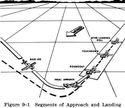The factors involved and the techniques described for the normal approach and landing also have variable applications to the other than normal approaches and landings which are discussed later in this chapter. This being the case, the principles of normal operations are explained first and must be understood before proceeding to the more complex operations (Fig. 9-1).