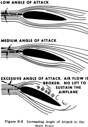 critical angle of attack is about 15 to 20 degrees (Fig. 3-3). Stalls will