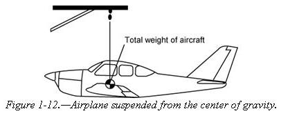 Gravity is the downward force which tends to draw all bodies vertically toward the center of the Earth. The airplane’s center of gravity (CG) is the point on the airplane at which all weight is considered to be concentrated. For example, if an airplane were suspended from a rope attached to the center of gravity, the airplane would balance.