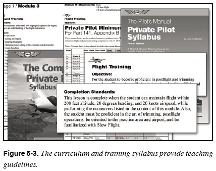How To Use a Training Syllabus Any practical training syllabus must be flexible and should be used primarily as a guide. [Figure 6-3] When necessary, the order of training can and should be altered to suit the progress of the student and the demands of special circumstances. For example, previous experience or different rates of learning often require some alteration or repetition to fit individual students. The syllabus should also be flexible enough so it can be adapted to weather variations, aircraft availability, and scheduling changes without disrupting the teaching process or completely suspending training.