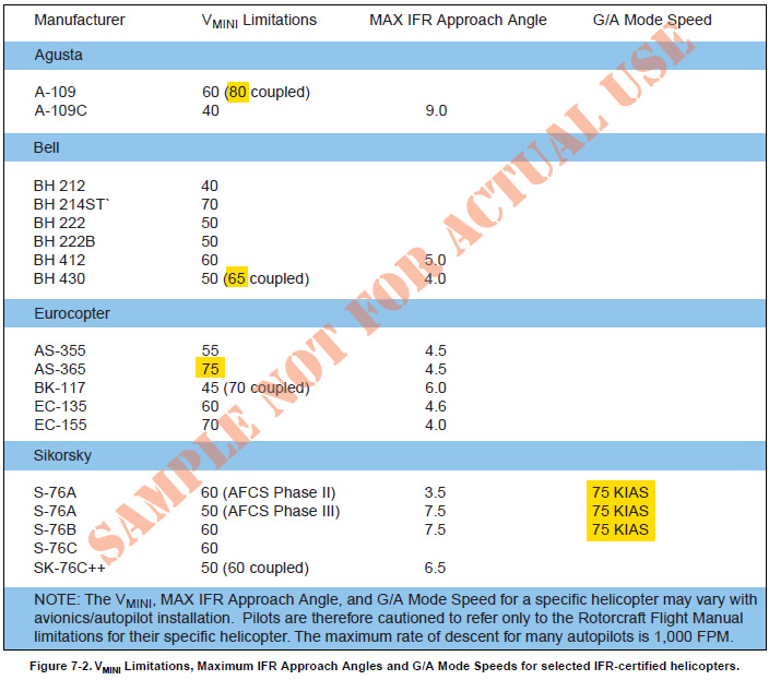 maximum VMINI of 70 KIAS and an IFR approach angle