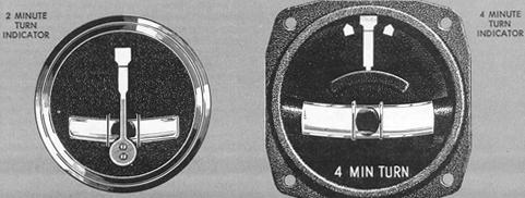 Of the two types of turn needle shown in Figure 4-28, the 2-minute turn indicator is the older. If the instrument is accurately calibrated, a single needle-width deflection on the 2-minute indicator means that the aircraft is turning at 3° per second, or standard rate (2 minutes for a 360° turn). On the 4-minute indicator, a single needle-width deflection shows when the aircraft is turning at 1-1/2° per second, or half standard rate (4 minutes for a 360° turn). From a comparison of the indexes on the two instruments, you can see why the 4-minute instrument was developed: The half standard-rate (one-needle width deflection) turn used by high-speed aircraft is more easily read on the 4-minute indicator.