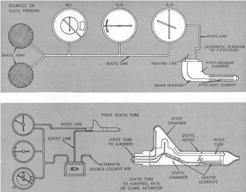 All of these instruments, whether connected to a static source or to both static and pitot lines, operate in response to differences in air pressure that exist within each instrument. The pressure differential is due either to impact and static, or to static and trapped air pressures.