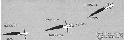 Many of the common misconceptions associated with aircraft performance and pilot control techniques are traceable to ignorance of aerodynamic forces and their varying effects as the aircraft is maneuvered. Our thinking and terminology are oriented to the ground rather than to the air, and these contribute to misunderstandings. For example, we think of "up" and "down" as referenced vertically to the Earth's surface, and the elevators (also a ground-referenced term) as the means of up/down control. Back elevator control pressure should mean "up," and forward elevator, "down." This is true to varying degrees and under certain flight conditions. Under other conditions, back elevator control pressure will fail to produce any "up" result. A related misconception is that because weight always acts downward, lift always acts upward and opposite to weight. This is not always so.