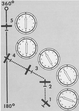 5. Reduce the drift correction to 10° left. The aircraft heading is now 350°. This correction may hold the desired course, or it may be too small or too large. If the course is not maintained, further bracketing will be required.