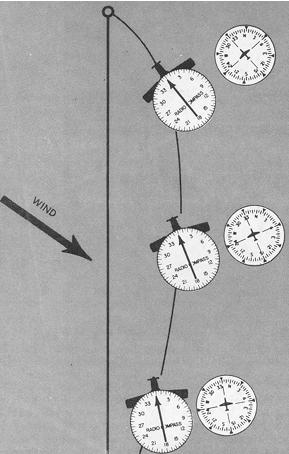 6. If the initial 10° drift correction is excessive, as shown by needle deflection away from the wind, turn to parallel the desired course and let the wind drift you back on course. When the needle is again zeroed, turn into the wind with a reduced drift correction angle.