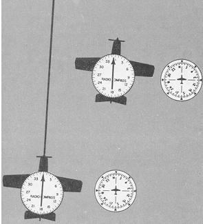 Outbound Tracking. Procedures for tracking outbound are identical to those used for inbound tracking. However, the direction of the azimuth needle deflections are different from those noted during inbound track interceptions, as shown in Figure 8-28. When tracking inbound, a change of heading toward the desired track results in movement of the azimuth needle toward zero. When tracking outbound, a change of heading toward the desired track results in needle movement further away from the 180° position.