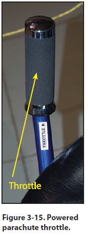 The throttle is the pilot’s hand control to regulate the power provided by the engine. The configuration of the throttle control varies from one cart manufacturer to another. Refer to the POH of each individual PPC for function reference. [Figure 3-15]