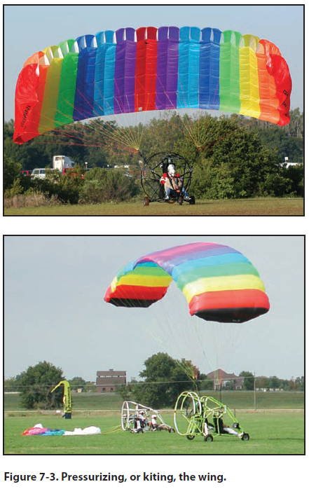 parachutes have two goals during the takeoff roll: to pressurize and raise the wing overhead making sure