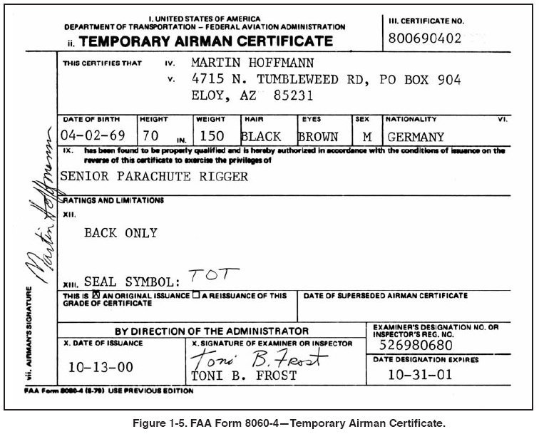 the individual must give his/her current airman test