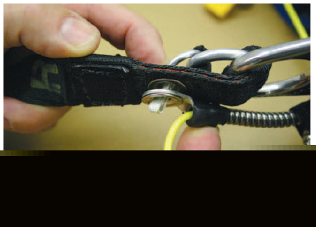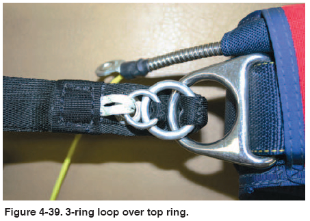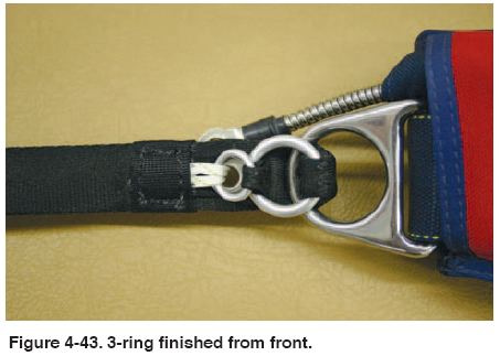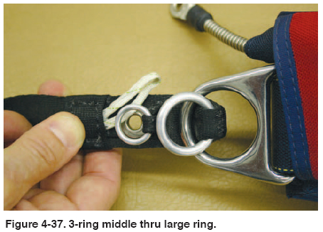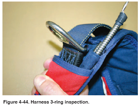 • Harness 3-ring attachment. [Figure 4-44] Check for wear on the webbing and any damage to the ring or chipping of the plating.