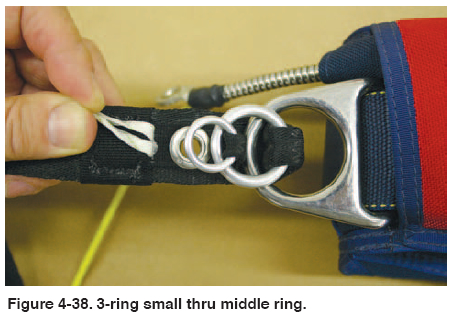 Riggers must be familiar with the assembly of the 3-ring release since they may have to connect new canopies to the harness and container, or have to disconnect the main canopy to untangle it after landing. Figures 4-36 thru 4-43 show the correct assembly sequence.