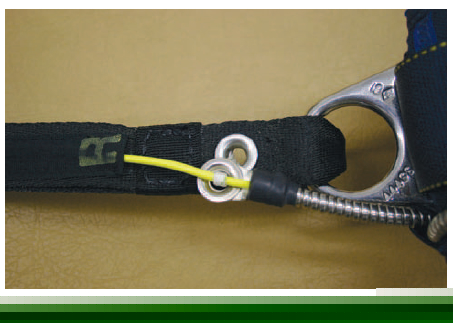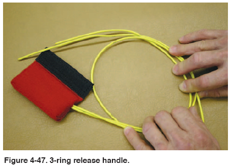 • 3-ring release handle. Check the cable for cleanliness and cracks, and ensure that the cable ends are sealed; inspect the Velcro® on the handle. [Figure 4-47]
