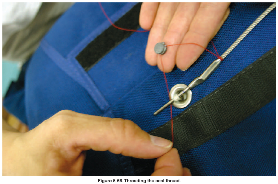 After packing a parachute, he shall seal the pack with his