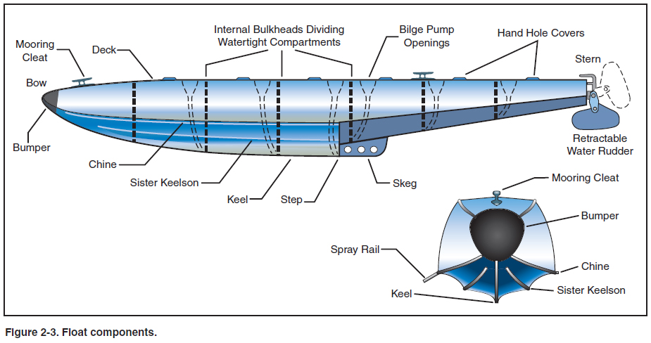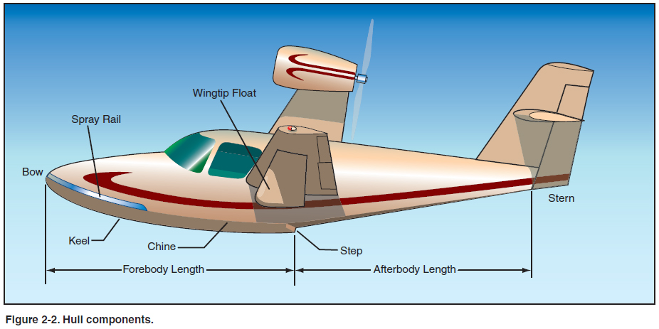 Many of the terms that describe seaplane hulls and floats come directly from the nomenclature of boats and ships. Some of these terms may already be familiar, but they have specific meanings when applied to seaplanes. Figures 2-2 and 2-3 describe basic terms, and the glossary at the end of this book defines additional terms.