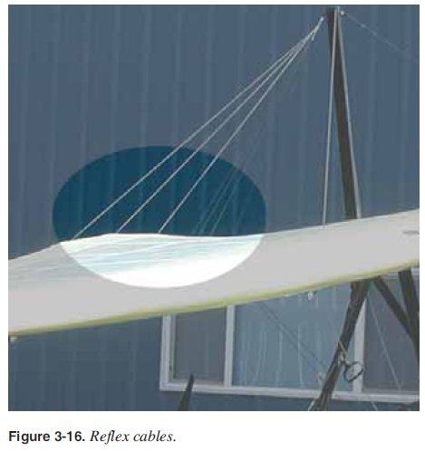Wing Systems Refl ex Systems As discussed in the aerodynamics section, the trailing edge near the root and the tips must stay up during unusually low or negative angles of attack [Figure 2-29] to maintain a positive pitch stability for the aircraft. There are a number of refl ex systems used to accomplish this in emergency situations. ![]() Refl ex cables—most wings with a king post use cables to hold the trailing edge up at unusually low or negative angles of attack. These refl ex cables are secured to the top of the king post and attach to several positions on the trailing edge where the battens are located. Different manufacturers have different positions where these are attached, depending on the design of the wing. Refl ex cables also provide additional refl ex at high speeds because the drag of the wires pulls up the trailing edge, creating more refl ex at these higher speeds. [Figure 3-16] ![]() Washout struts—tubes near the tips that keep the tip trailing edge up during very low or negative angles of attack. They can be inside or outside the double surface of a wing. The refl ex cables may not go to the wingtip, so washout struts are used to hold up the trailing edge at the tip at very low and negative angles of attack. [Figure 3-17] ![]() Sprogs—for wings using struts with no king post, sprogs are used to keep the inboard trailing edge up in place of the refl ex cables. A wire attached to the top of the leading edge holds the sprog up in place. [Figure 3-18] ![]() Pitch Control System The pitch control system is a simple hinge on the keel at the hang point that allows the pilot to push the control bar out and pull the control bar in to control pitch. This wing attachment is different for each manufacturer, but all designs have this hang point wing attachment so the control bar is always perpendicular to the longitudinal axis of the aircraft. This raising and lowering of the nose is the pitch control system for the WSC aircraft. [Figures 2-7 and 3-19] ![]() ![]() |