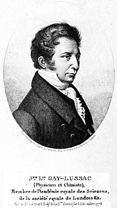 Joseph Gay-Lussac Joseph Louis Gay-Lussac was born December 6, 1778 in Saint-L‚onard-de-Noblat, France. He was a French chemist and physicist known for his studies on the physical properties of gases. After graduating from the cole Polytechnique in Paris in 1800, his first major investigation concerned the thermal expansion of gases. He showed that a common thermal-expansion coefficient applied to all gases. This was significant in the establishment of the Kelvin temperature scale later in the century. On August 24, 1804, Gay-Lussac and Jean-Baptiste Biot ascended to a height of approximately 13,000 feet (3,962 meters) to study variations in the Earth's electro-magnetic intensity relative to altitude. In a later solo ascent, Gay-Lussac climbed to 23,000 feet (7,010 meters)—a record that held for fifty years. On this flight, he experienced the effects of oxygen deprivation but still managed to collect air samples at over 20,000 feet (6,000 meters), study the variation of pressure and temperature, and repeat his earlier electro-magnetic observations. In 1805, he collaborated with Alexander von Humboldt in determining the proportions of hydrogen and oxygen present in water. Gay-Lussac served in the French Chamber of Deputies and the Senate. He died on January 2, 1850 in Paris, France.