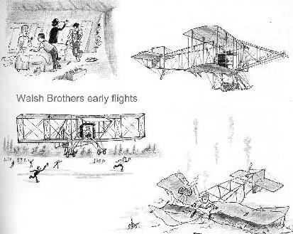 The next appearance on the aviation scene, was one of the most notable in our aviation history.  In 1910, two Auckland brothers, Leo and Vivian Walsh, backed by an enthusiastic syndicate, imported a Howard Wright Farman biplane in kitset form.  For the considerable sum of $1530, the kitset consisted mainly of rolls of wire and cloth along with the engine, and roughly cut spars and straits, with drawings supplied.