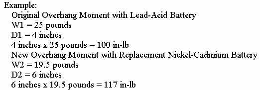 Weight and balance procedures for aircraft are contained in chapter 13 of AC 43.13-1A. 206. RESTORATION OF LEAD-ACID BATTERIES. When lead-acid batteries are restored in lieu of nickel-cadmium batteries the procedures contained in sections 1, 2, and 3 of this chapter should be used. Structural requirements are referenced in paragraph 199 and figure 10.7. Airframe protection is specified in paragraph 177. Follow the procedures outlined in section 2 of this chapter for battery security, battery venting, and battery drains. Assure that all electrical requirements have been accomplished. Place emphasis on aircraft weight and balance. Refer to chapter 13 of AC 43.13-1A. 207. - 210. [RESERVED] |