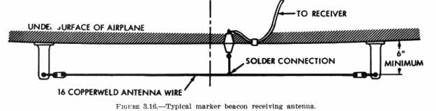 The marker receiver operates at a frequency of 75 MHz. In order to keep to a minimum the number of antennas on the aircraft, the marker receiver may utilize the same antenna as the range receiver if that antenna is mounted on the underside of the aircraft. However, both receivers should include provisions to permit simultaneous operation without interference. A whip or other vertical type of antenna should not be used for marker reception since the ground facility transmits from a horizontally polarized antenna.