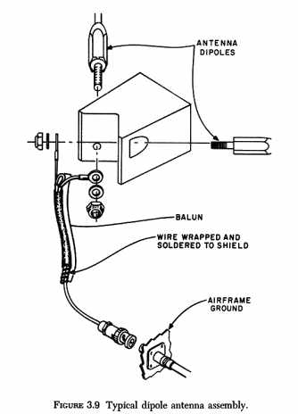 A dual element or balanced antenna system requires a balun or an impedance matching device for maximum signal transfer into an unbalanced coaxial cable. Rigid antennas, as displayed in figure 3.4, incorporate a balun as an integral component of the antenna assembly. Follow the manufacturer's installation procedures and assure that the balun is properly grounded to the airframe. Refer to AC 43.13-1A "Acceptable Methods, Techniques, and Practices - Aircraft Inspection and Repair" chapter 11, for acceptable bonding practices. {See Figure 3.9.}