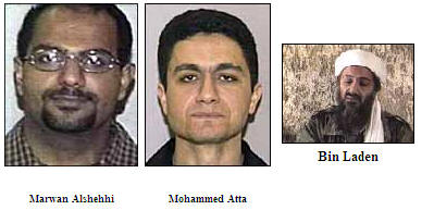 Mohamed Atta, 33, of Coral Springs, listed on the passenger manifest of an airplane hijacked Tuesday from Boston's Logan International Airport. Atta was killed in the World Trade Center crash. Marwan Alshehhi of Hollywood. Authorities found a car at the Boston airport registered to Atta and Alshehhi, and the two men took flight lessons together. Secretary Powell has reported Bin Laden is the prime candidate for these terrorist attacks.