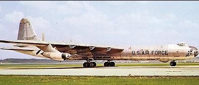 August 1954 The B-36, an intercontinental bomber, was designed during WW II. The airplane made its maiden flight on August 8, 1946 and on June 26, 1948 the Strategic Air Command received its first B-36 for operational use. By August 1954, when production ended, more than 380 B-36s had been built for the USAF.