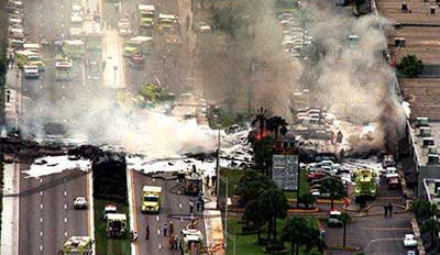 The DC-8 skidded across the field and onto NW 72nd Ave,