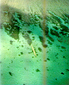 Upon returning back the Boeing 24 encountered heavy enemy attack,  resulting mechanical problems over Majuro. The aircraft  crashed in Japanese territory. The pilot became a prisoner of the  Japanese and was reported missing in action. This aerial photo is of the B-24 in open water