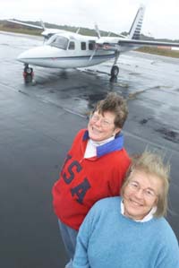 Media Credit: Cape Cod Times Gwen Bloomingdale, right, and Barbara Gard in front of their ill-fated plane.