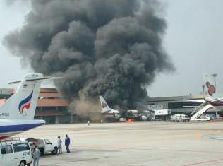 Explosion and fire of Thai Airways International Boeing 737, while sitting at gate at Don Muang International Airport on March 3, 2001, Bangkok