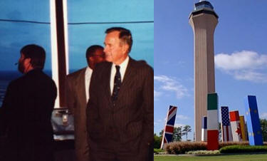 The newly constructed Houston Intercontinental Airport Traffic Control Tower, 336' measured from ground level, is the nation's tallest ATC facility. Dedication ceremonies for the new control tower at Houston's George Bush Intercontinental Airport took place on December 12, 1997. President George Bush, congressmen and other dignitaries participated in the ribbon cutting ceremonies. President Bush took a tour of the new tower. It took over 10 years to complete the planning and construction of the tower. It officially opened on September 20, 1997 with the first arrival at 4:06 in the morning. At 334 feet, it is the tallest control tower in the country and was located to serve the present runway structure as well as runways planned for the near future. Ground breaking occurred February 28, 1994. The total construction cost was $9.9 million. |