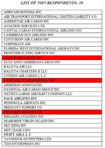 October 5, 2009, The FAA Administrator, Randy Babbitt announced that the majority of US air carriers and pilot organizations have responded to our safety Call To Action. That is to address pilot fatigue, pilot training, pilot performance, air carriers to be more thorough in examining FAA pilot records before hiring, major carriers would be required to analyze the safety information contained in flight data recorders on individual aircraft and pilots would be required to disclose safety problems as part of their Aviation Safety Action Program. The FAA has published a list of those who had not responded to the FAA safety Call To Action. That list is posted below. The majority have provided written commitment to implement several best practices and adhere to higher professional standards for safety. |