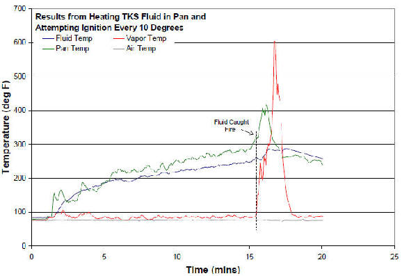 In prior certifications of TKS systems on board aircraft, the issue of fluid flammability was not a concern, the fluid was simply considered to be non-flammable. However, recent testing has shown that the fluid is in fact flammable under certain conditions.