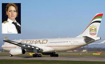 September 17, 2010 - Etihad Airways celebrated a maiden commercial flight of its first female Captain, Sophie Blanchard. Captain Blanchard, a French national, took the controls of the left hand seat in the flight deck of an Airbus A330-200 for the first time on Wednesday September 8th for Flight EY17 from Abu Dhabi to London Heathrow. Etihad currently has 10 female pilots within its ranks and four female cadet pilots.