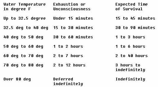 of the onset of unconsciousness and the expected time of survival in water